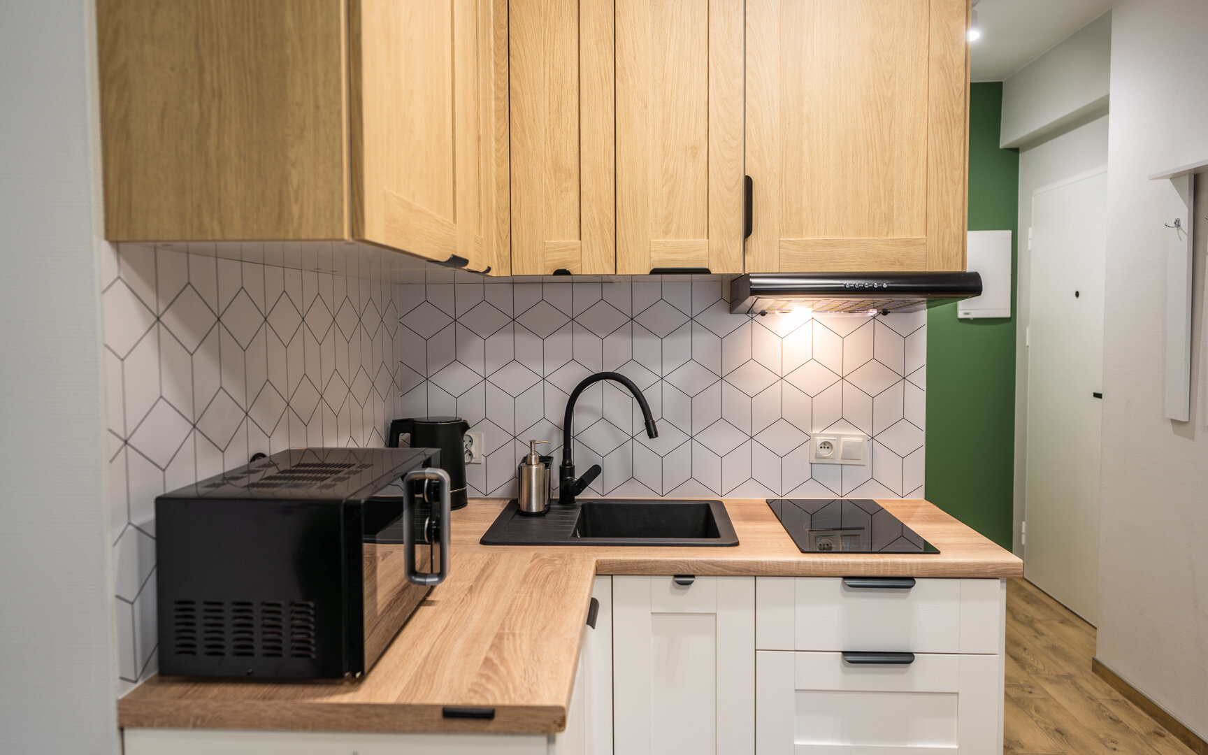 Apartament typu studio dla 4 osób. Jednopokojowy apartament z łóżkiem małżeńskim oraz rozkładanym narożnikiem. Na wyposażeniu aneks kuchenny oraz prywatna łazienka. Idealny dla pary lub rodziny.