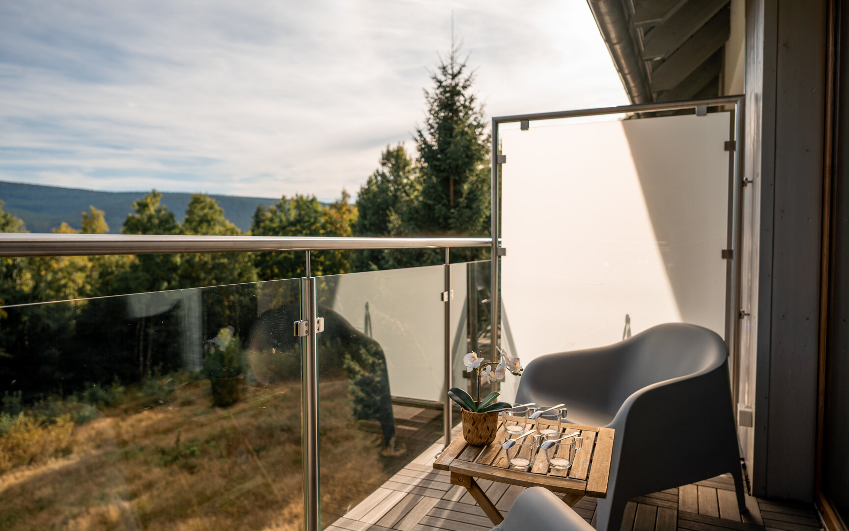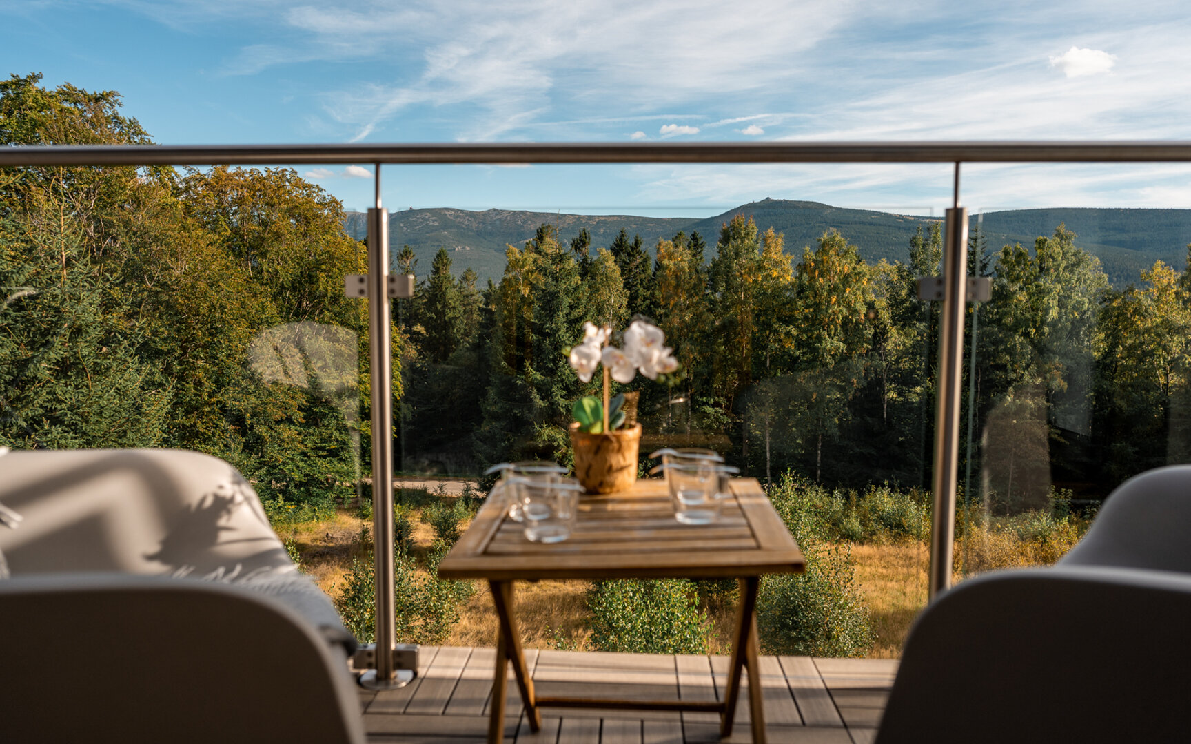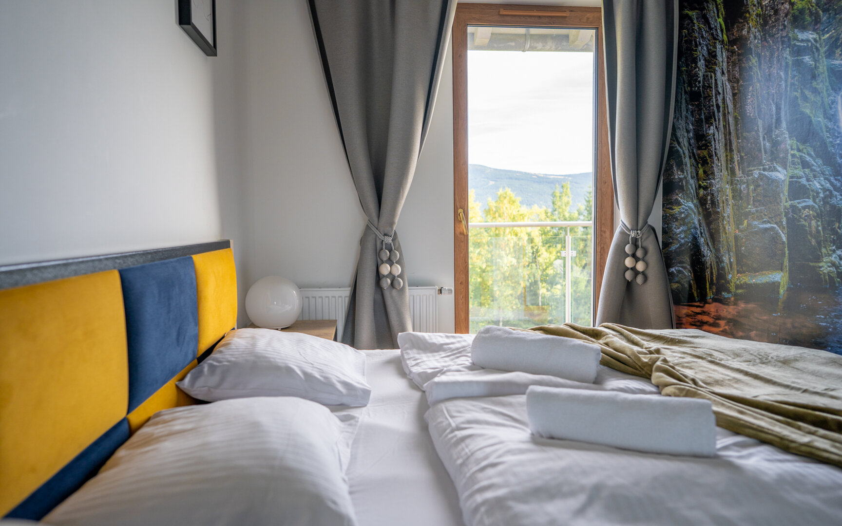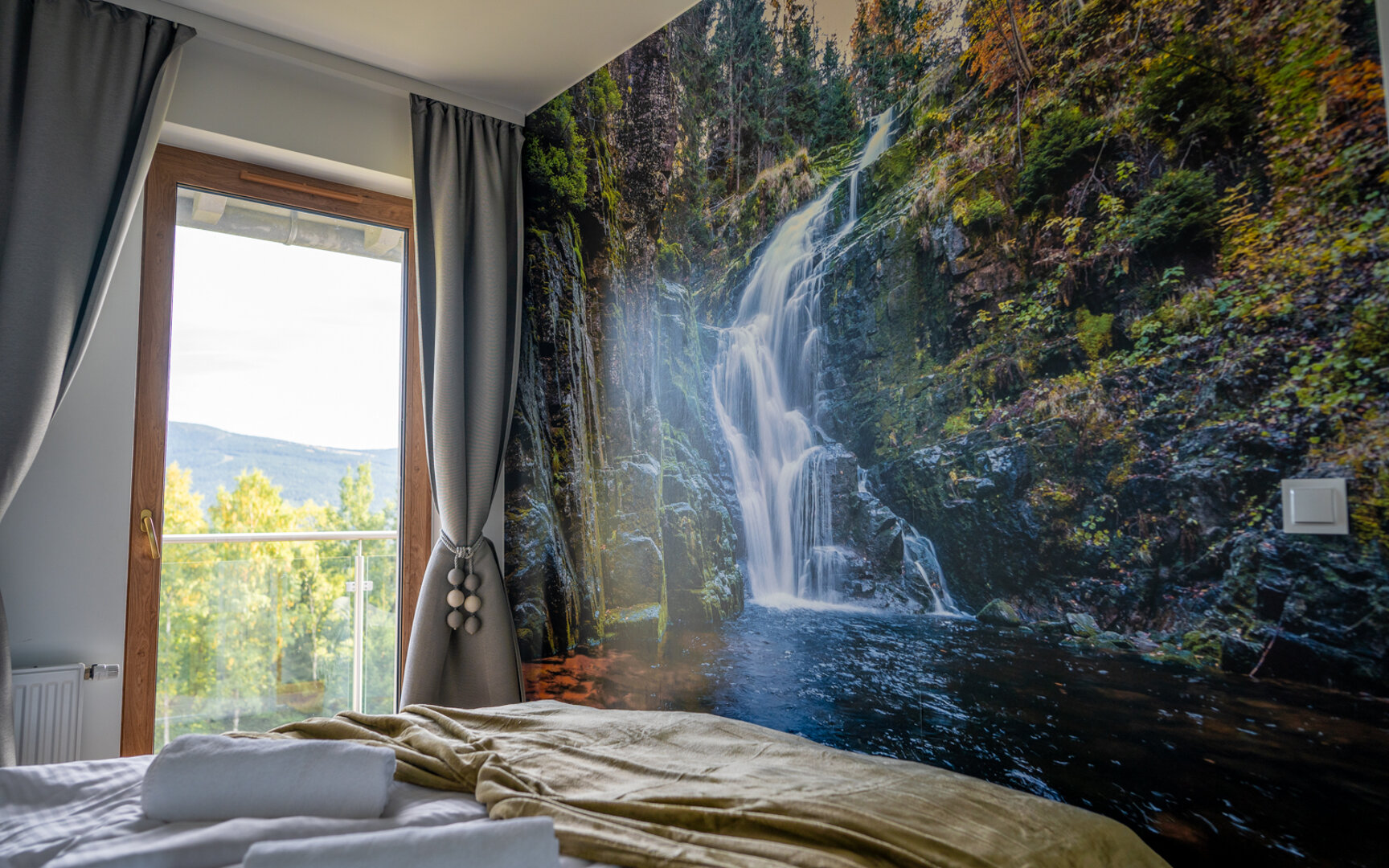 Z okien apartamentu rozpościera się niezapomniany widok na Szrenicę i panoramę Karkonoszy - poranki przy kawie w takim otoczeniu smakują lepiej niż gdziekolwiek indziej.