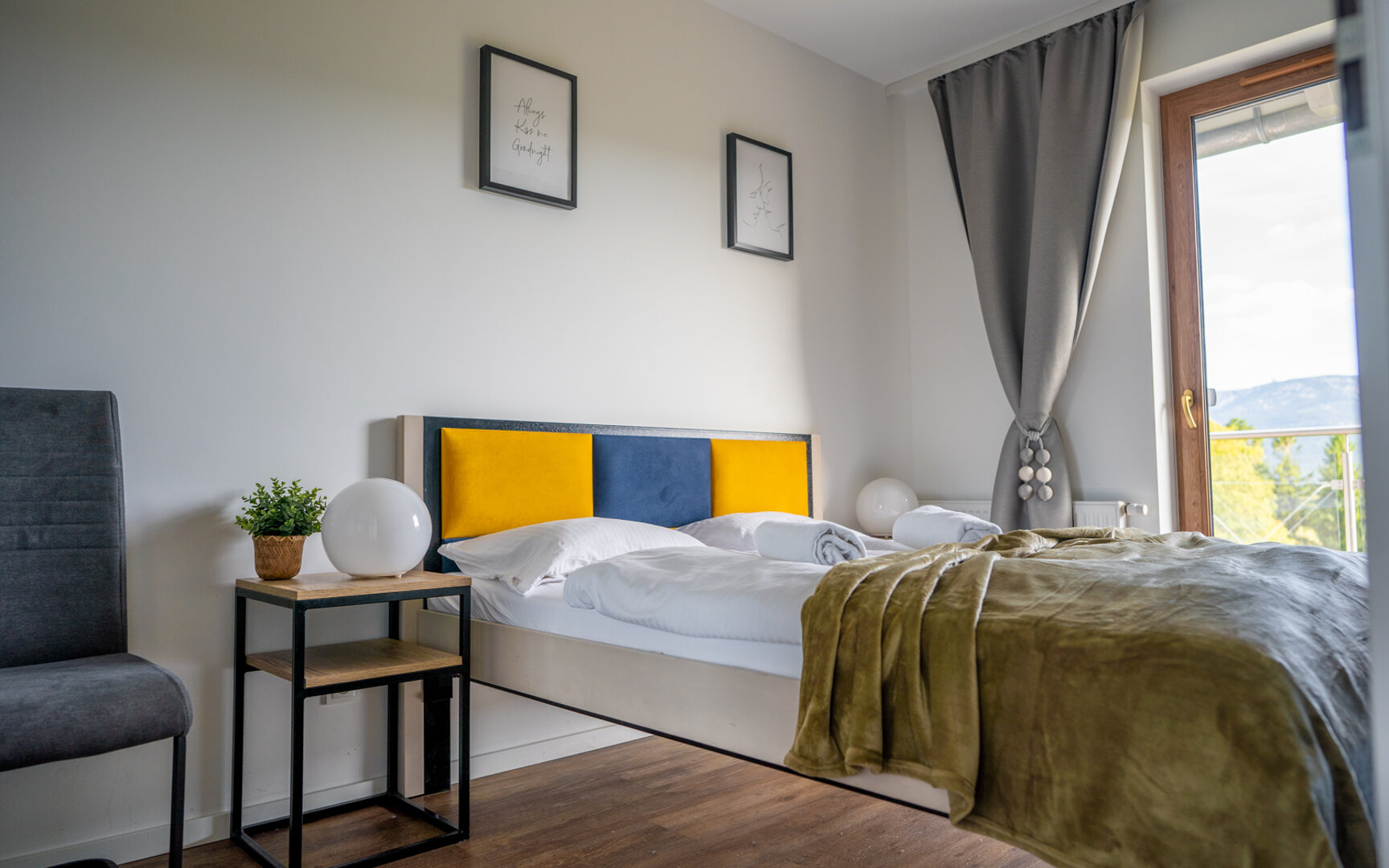 Apartament przeznaczony dla 2 osób, położony tuż przy stoku narciarskim. Apartament posiada wygodne łóżko małżeńskie, aneks kuchenny, balkon, łazienkę. Idealny dla par szukających wypoczynku blisko natury i atrakcji.