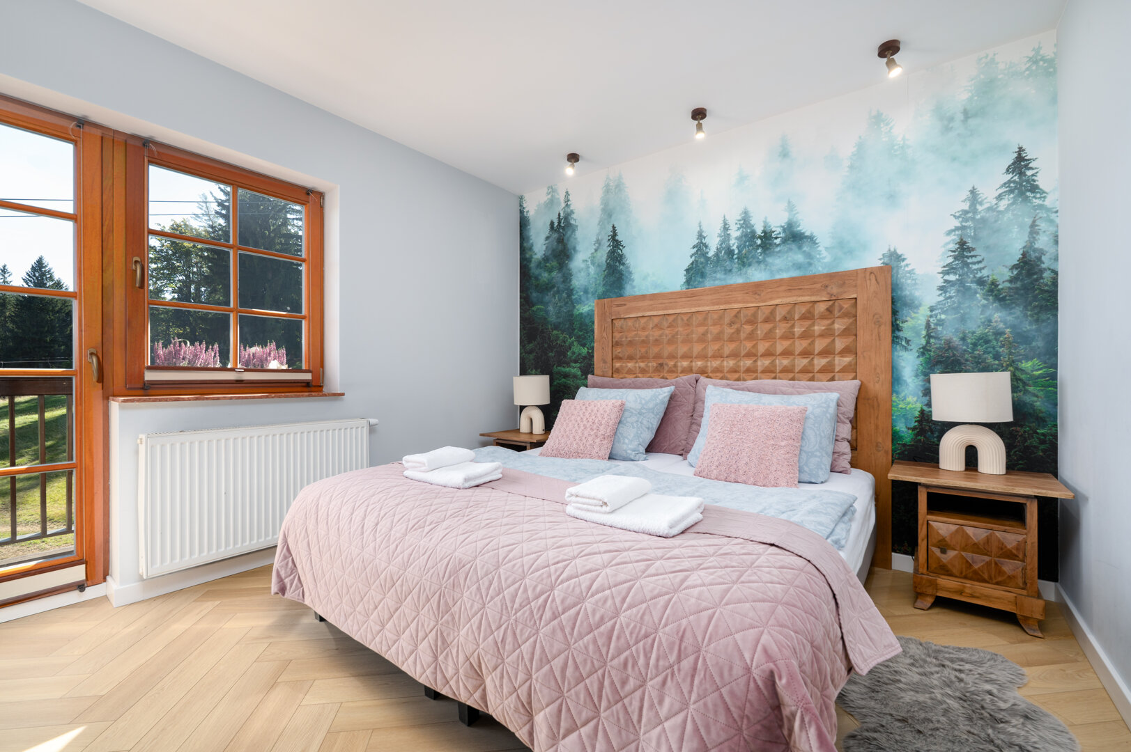 Przytulny apartament z balkonem, inspirowany naturą. Do dyspozycji gości bezpłatna sauna i pokój zabaw dla dzieci.