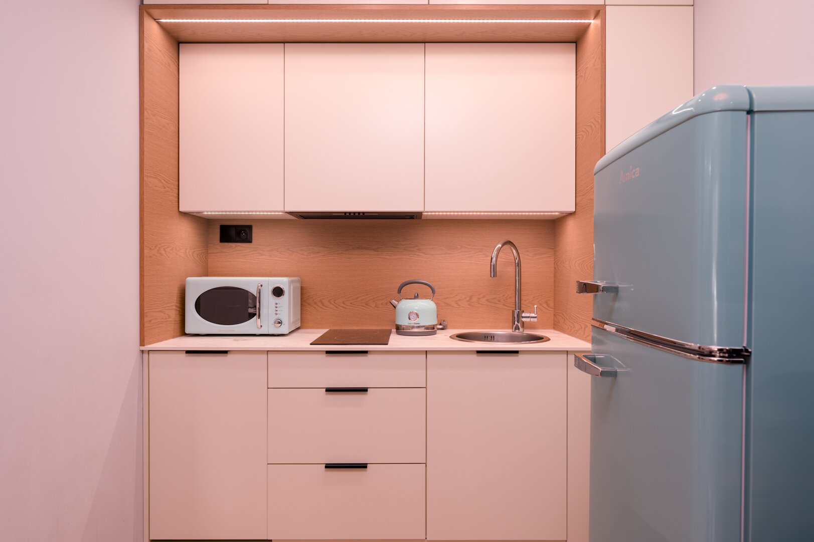 Apartament typu studio dla 4 osób. Jednopokojowy apartament z łóżkiem małżeńskim oraz rozkładanym narożnikiem. Na wyposażeniu aneks kuchenny oraz prywatna łazienka. Idealny dla pary lub rodziny.
