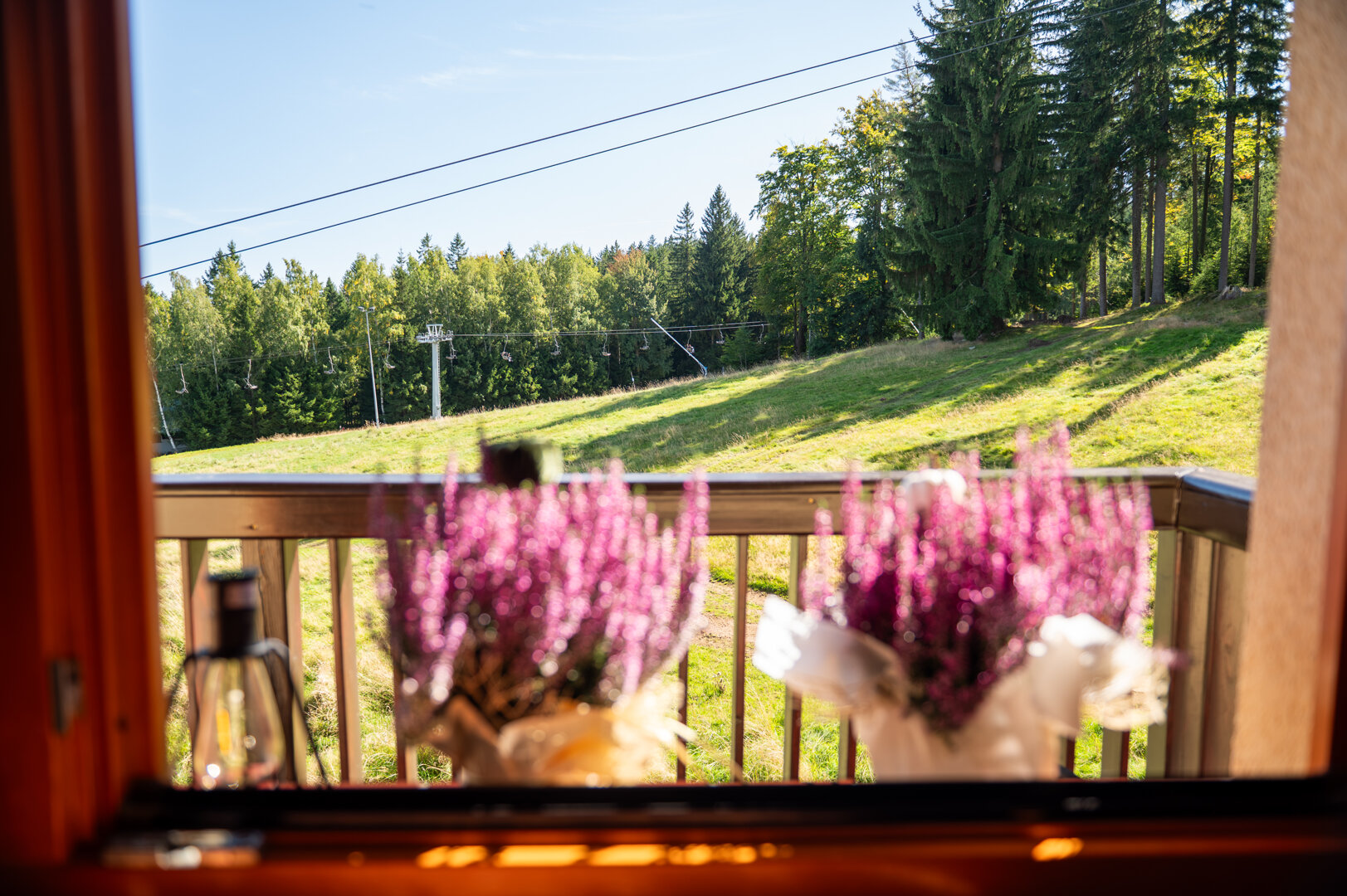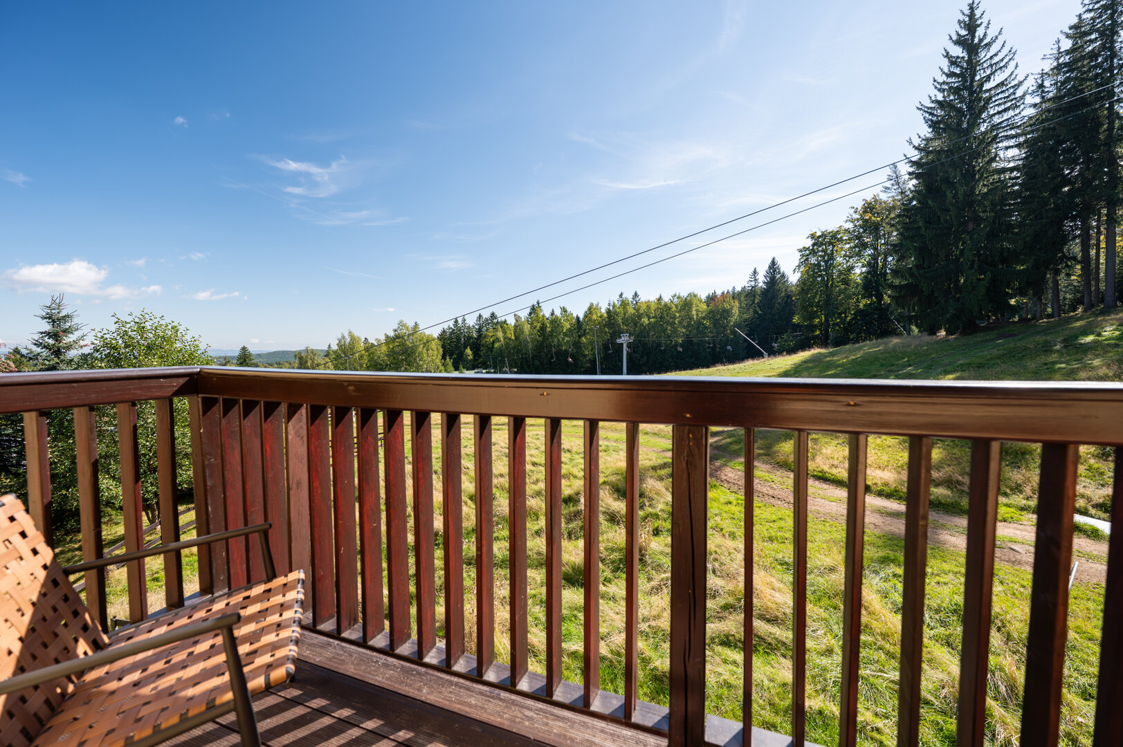 Dwupoziomowy apartament z balkonem i widokiem na stok, panoramę, Wysoki Kamień oraz góry. Do dyspozycji Gości: 2 sypialnie, salon, 2 łazienki oraz balkon.