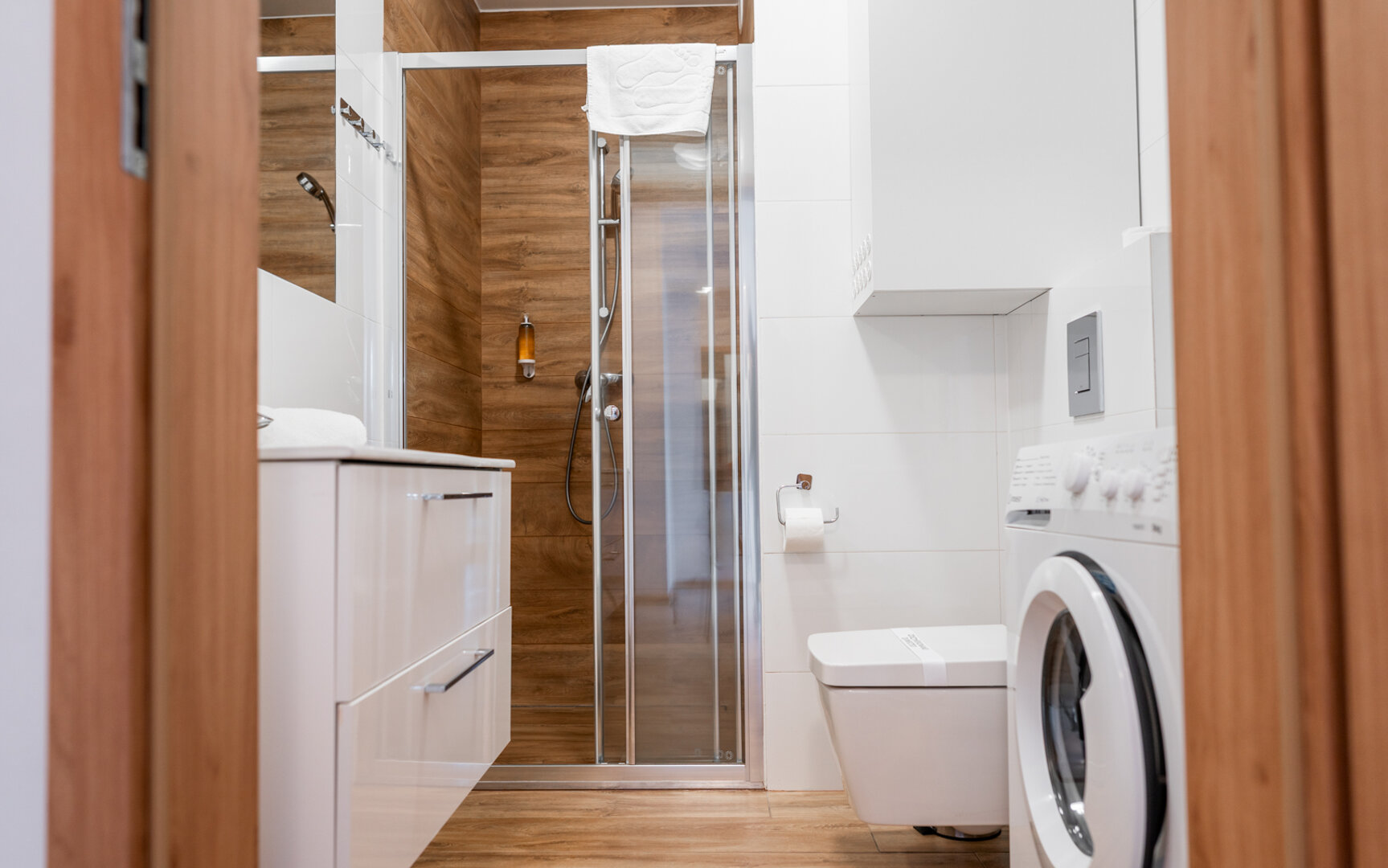 Dużym atutem apartamentu jest balkon z pięknym widokiem na pasmo górskie , idealny na poranną kawę lub wieczorny relaks. Do dyspozycji Gości jest również pralka, co znacząco podnosi komfort pobytu , szczególnie podczas dłuższych rezerwacji.